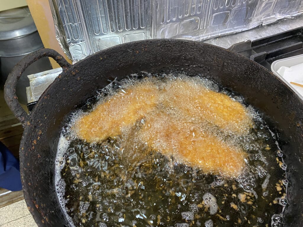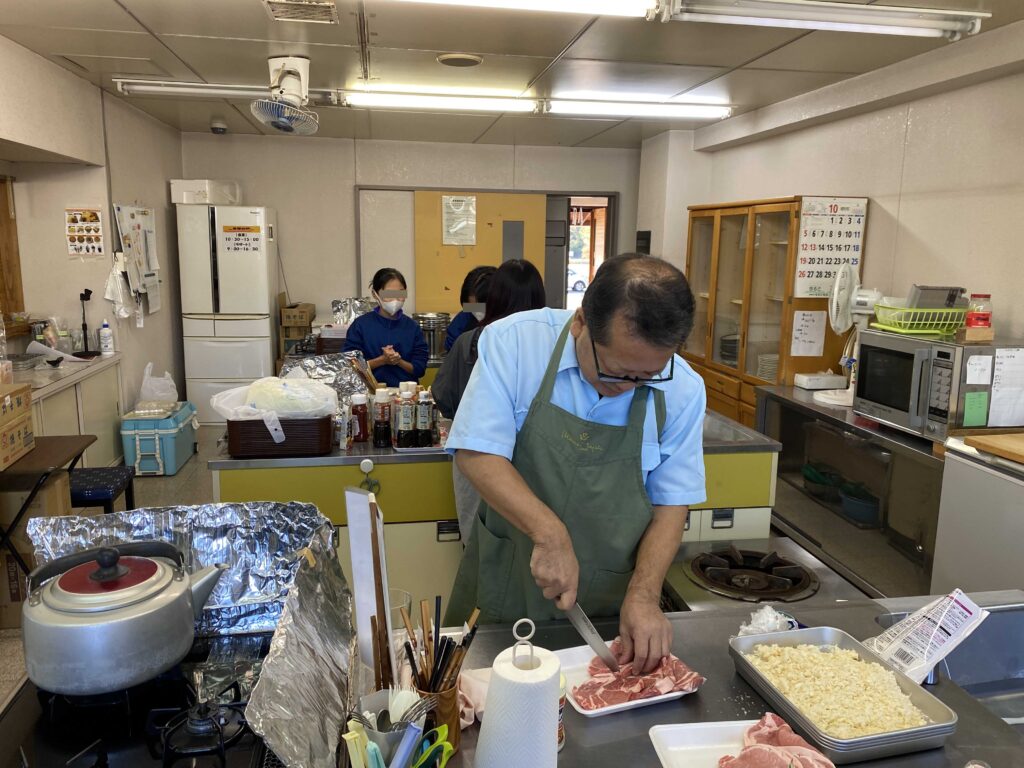 観光協会の事務局長も自ら腕を振るい、調理に参加。