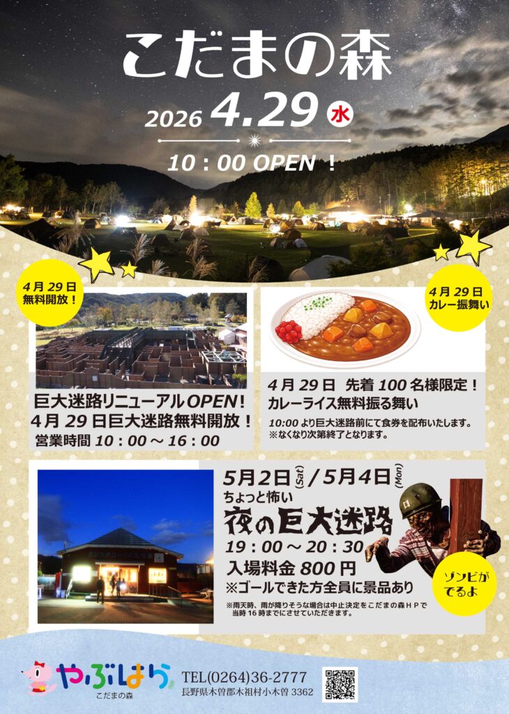 4月29日のOPENではリニューアルした巨大迷路を無料開放!